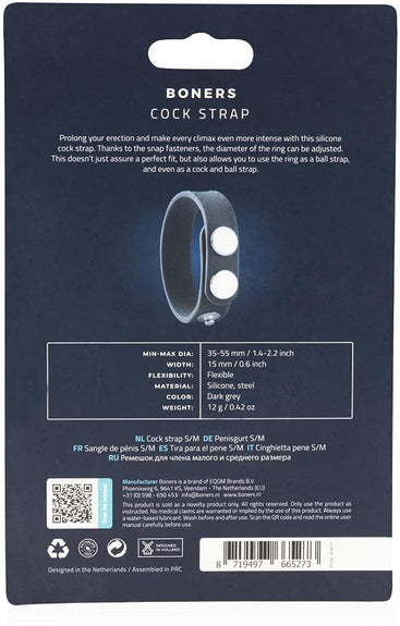 Boners cock strap is the perfect addition to the adventurous man's toy chest. Placing the cock strap at the base of your penis and tightening it creates additional blood restriction making your penis appear more prominent, as well as increasing its sensitivity. Wearing this delightful cock strap means more sensation and more confidence during sex.
