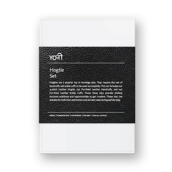 - Try adding in additional toys while using the hogtie set. While the hogtie set is everything you need to start experimenting with bondage play and different bondage positions, adding in other toys is a great way to spice up a bondage scene. Vibrators, dildos, blindfolds, and many other toys are easily added to bondage scenes and help take the scene to a new level.